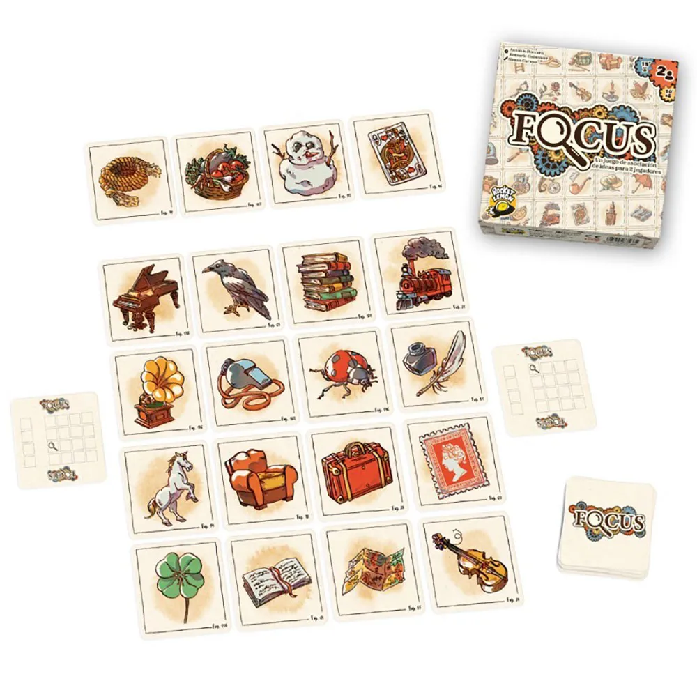 Focus on jännittävä yhteistyöpeli, jossa on kyse päättelystä ja ideoiden yhdistämisestä kahdelle pelaajalle Sherlock Holmesin maailmassa. 168 kuvituskuvan ja 3 pelimuodon ansiosta se tarjoaa haasteita niin aloittelijoille kuin kokeneillekin pelaajille. Tavoitteena on poistaa kaikki muut kortit paitsi omasi ja pelikumppanisi. Vuorosi aikana poistat yhden kortin antaaksesi heille vihjeen, mutta ole varovainen: jos poistat heidän salaisen korttinsa, he häviävät pelin! Pystytkö ratkaisemaan mysteerin tekemättä virheitä?
