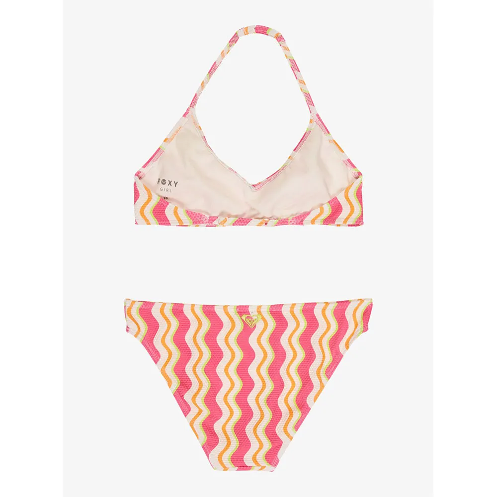 Fabric:Soft, recycled, resistant and stretch piqué textured fabric, Shape:Tri bra set, Padding None, Straps:Adjustable straps with rings and sliders, Closure:Ring and slider closure, Print placement may differ from one bikini to another, Embroidered ROXY logo.