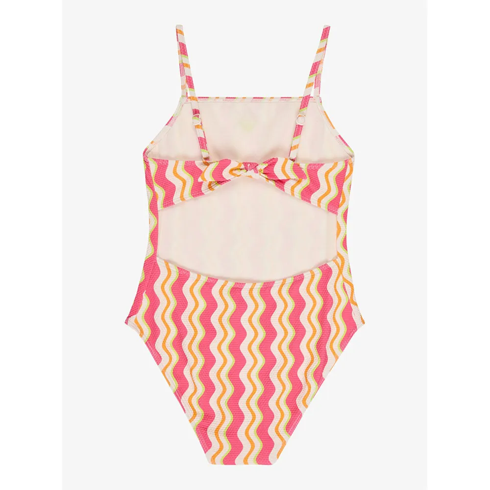 Fabric:Soft, recycled, resistant and stretch piqué textured fabric, Shape:One piece, Padding None, Straps:Adjustable straps with rings and sliders, Closure:Tie, Print placement may differ from one bikini to another, Embroidered ROXY logo, Cut out on the side waist and faux knot in the back.