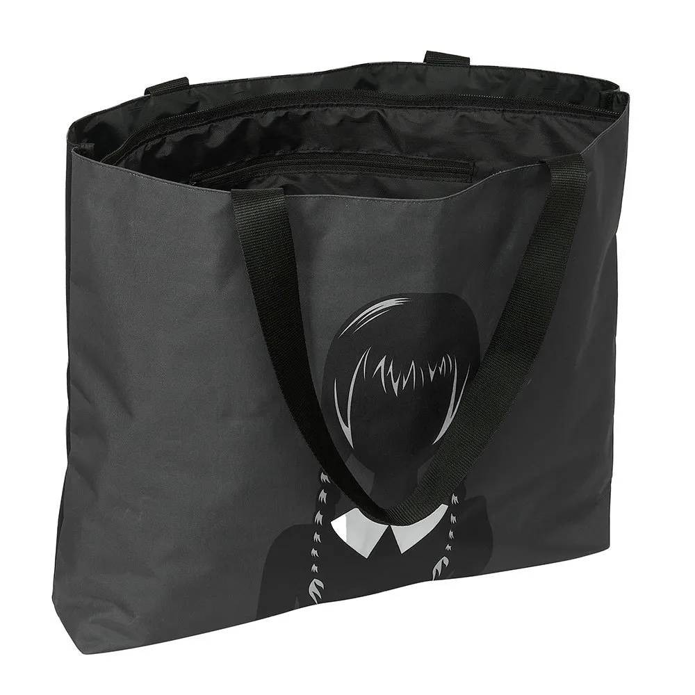 Omaksu Wednesday Addamsin ihastuttavan synkkä ja ainutlaatuisen kiehtova tyyli virallisella SAFTA Wednesday -ostoskassilla. Tämä on enemmän kuin pelkkä laukku; se on kannanotto faneille ja monipuolinen kumppani päivittäisiin seikkailuihisi. Olitpa sitten matkalla tunneille omaan Nevermore Academyysi, selailemassa erikoista kirjakauppaa tai vain hoitamassa asioita, tämä laukku yhdistää ikonisen muotoilun poikkeukselliseen toimivuuteen, tehden siitä täydellisen asusteen niille, jotka kulkevat omaa polkuaan.