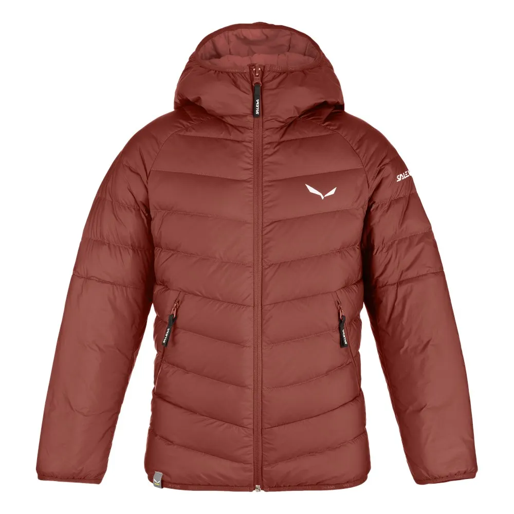 Lasten lämmin, kevyt untuvatakki. Dolomiti di Brentan inspiroima, tämä poikkeuksellisen kevyt, vettähylkivä untuvatäytteinen takki on varustettu mukavalla 550 cuin 80/20 untuvatäytteellä ja TirolWool® Responsive -lisäosilla kosteudelle herkemmillä alueilla. Sisäpuolella on pehmeä, silkkimäinen untuvatiivis taftivuori. Eristetty kaulus antaa lisäsuojaa ja ergonomiset, kiilamaiset hihat ja olkapäät takaavat hyvän istuvuuden. Etuvetoketjussa on täyspitkä tuulenpitävä läppä ja joustavat reunukset hihansuissa, helmassa ja hupussa auttavat pitämään kylmän ulkona ja lämmön sisällä. Kaksi vetoketjullista kädenlämmittelytaskua pitävät piilotetut aarteet ja tärkeät löydöt tallessa. Tämä Salewa Committed -tuote on bluesign®-hyväksytty vuori, PFC-vapaa DWR (kestävä vettähylkivyys) -kangasviimeistely ja se on valmistettu Responsible Down Standard (RDS) -sertifioidusta untuvasta.