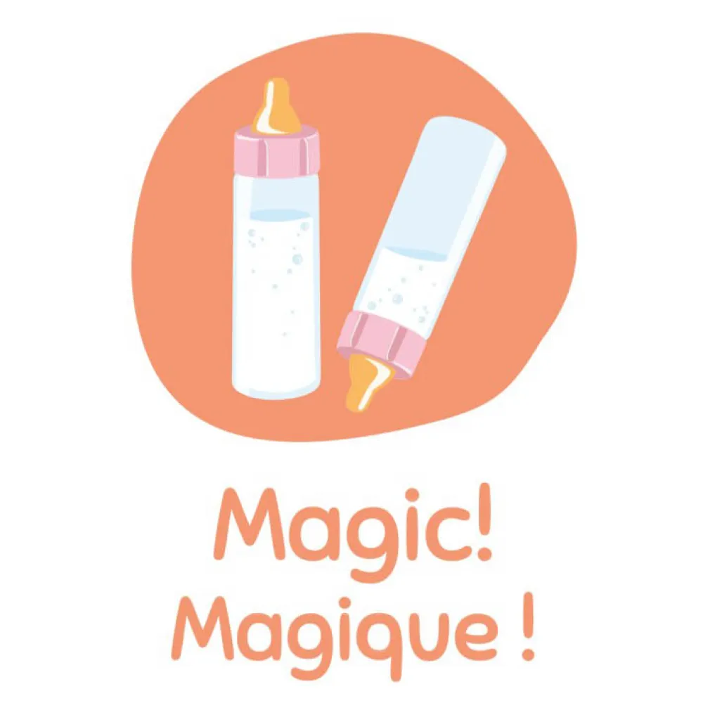 Smobyn Baby Nurse -taikapullo. Nukkesi on hyvin nälkäinen, anna hänelle nopeasti pullo ennen kuin hän alkaa itkeä. Jos käännät pullon ylösalaisin, maito katoaa taianomaisesti. Aivan kuin oikealla vauvalla. Kaikille pienille nukkeäideille 1-vuotiaasta alkaen.