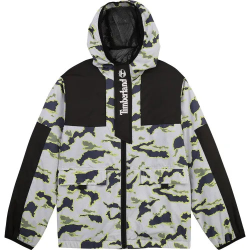 Tässä Timberland-poikien vedenpitävässä tuulitakissa on naamiointiprintti.