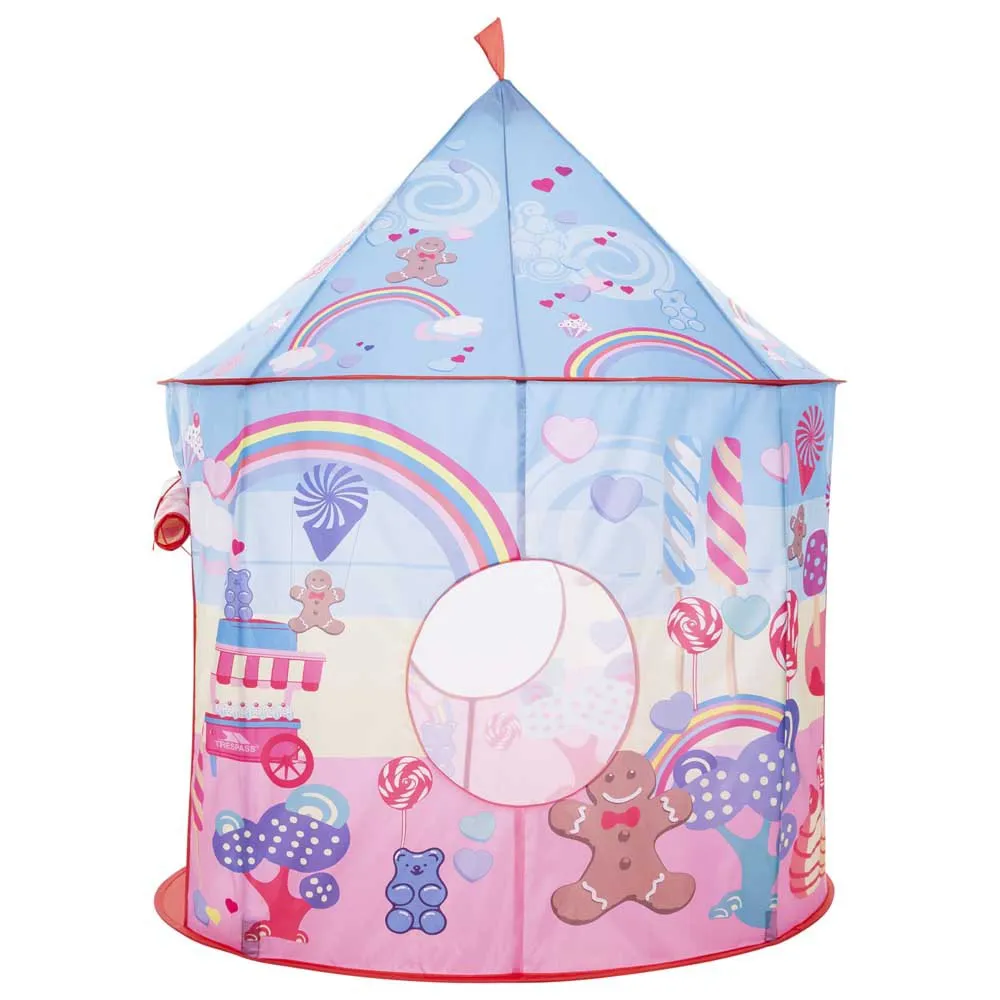 Helppo rakentaminen. Lasten leikkiteltta on helposti rakennettava pop up -teltta, joka pakataan kätevästi Trespass-merkkiseen kantolaukkuun.