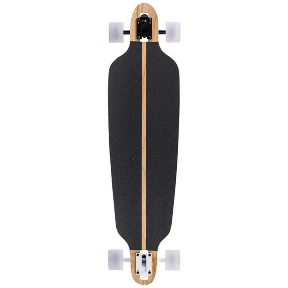 Drop through (DT) -rakenne asettaa tason lähemmäs maata kuin perinteiset top mount -longboardit, mikä antaa sinulle vakaan alustan ja täydellisen korkeuden pitkän matkan työntämiseen sekä kaupunkien ja rantojen risteilyyn. Moderni grafiikka erottuu joukosta, erityisesti hienovaraisilla luonnonpuun yksityiskohdillaan.
