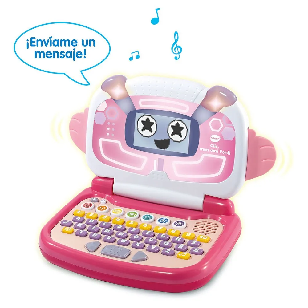 Harjoittele kirjaimiasi, laskentaa ja päätietokoneen perustaitoja uudella kannettavalla ystävälläsi - Clic! Clicin kädet liikkuvat ja hänen kasvonsa animoivat, kun hän kertoo vitsejä, laulaa ja tanssii.