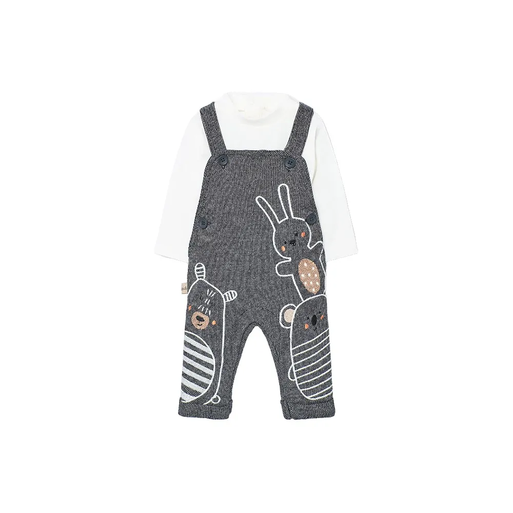 Ensemble tricot bébé gris avec de charmants motifs d´animaux, ce qui en fait un choix amusant et moderne pour votre tout-petit.
