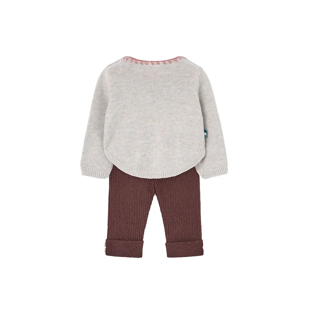 Ensemble tricot imprimé beige pour bébé fille, idéal pour garder votre petite au chaud et confortable pendant les mois d´automne et d´hiver.