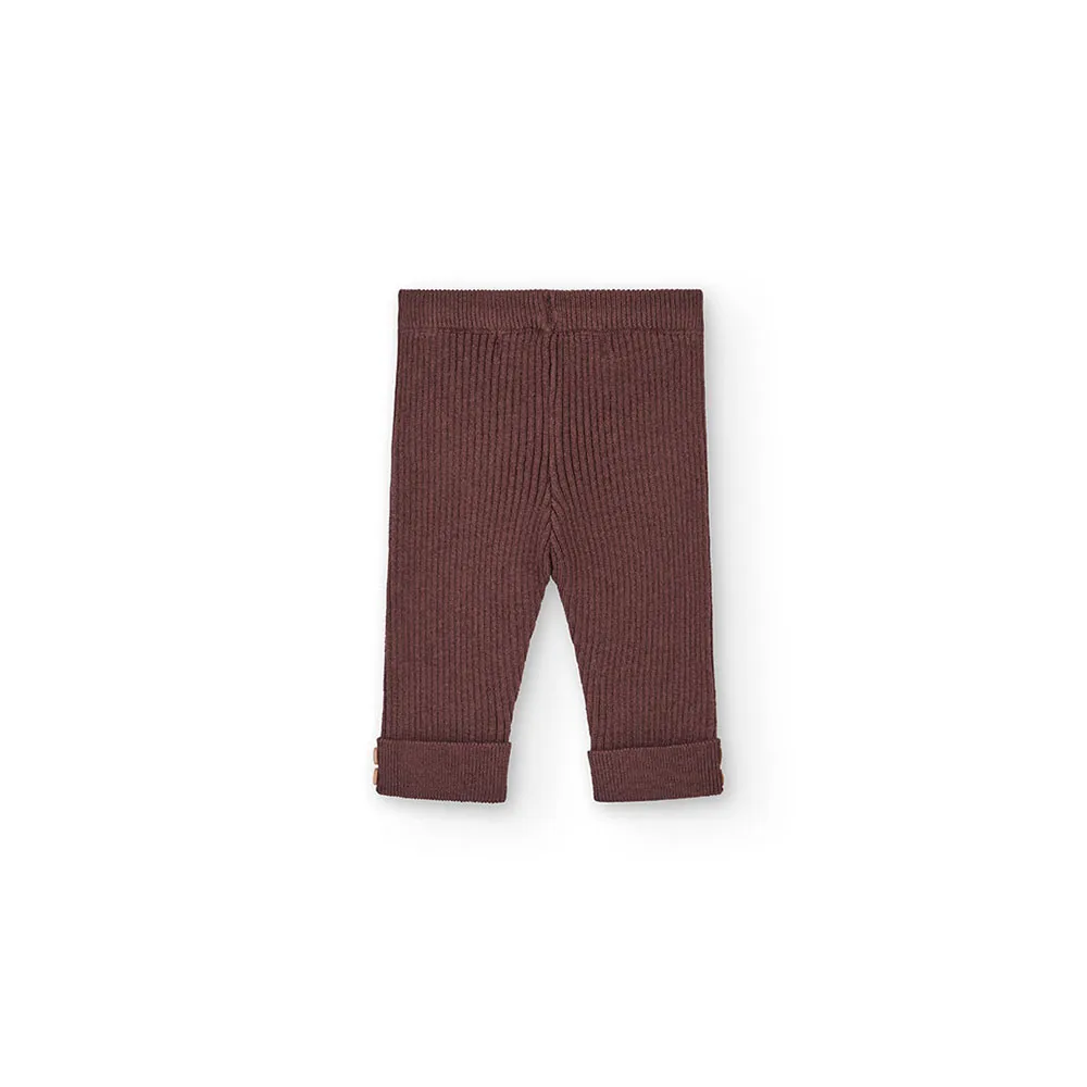 Le pantalon, également en marron, présente une finition côtelée qui assure une texture et un confort supplémentaires.