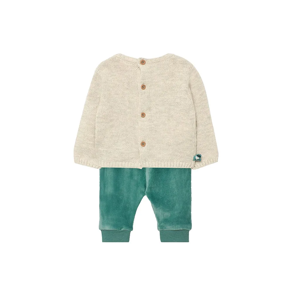 Cet ensemble tricoté comprend un pull avec de délicats détails brodés et un pantalon assorti, assurant un confort maximal à votre tout-petit.