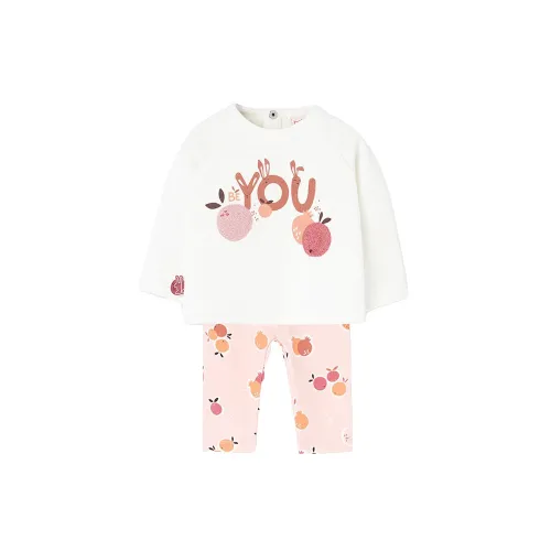 Ensemble tricoté blanc pour filles, orné de motifs de fruits, idéal pour les froides journées d´hiver et les journées fraîches de mi-saison.