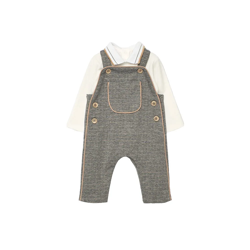 Ensemble en tricot gris pour bébé, parfait pour garder votre tout-petit confortable et élégant en toute saison.
