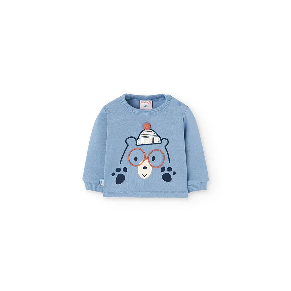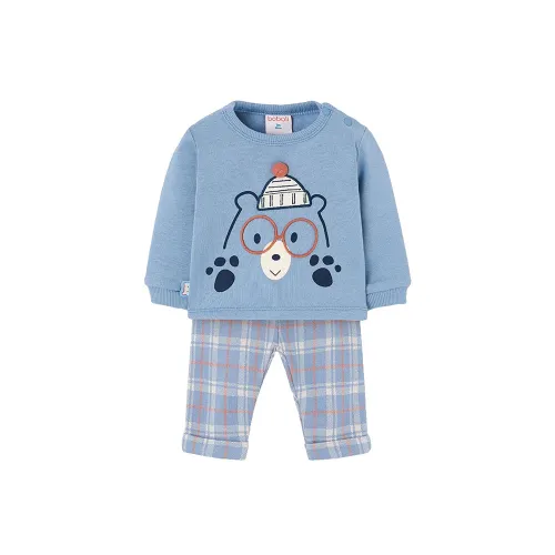 Ensemble en tricot pour bébé bleu, avec un motif animalier et à carreaux, idéal pour l´automne et l´hiver.