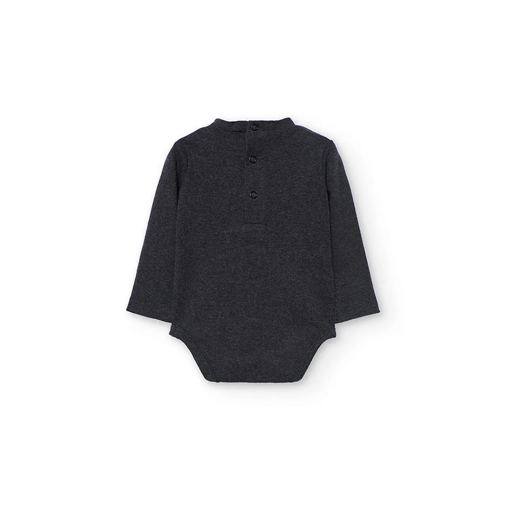 Ensemble tricoté pour bébé de couleur grise, idéal pour les journées fraîches d´automne et d´hiver.