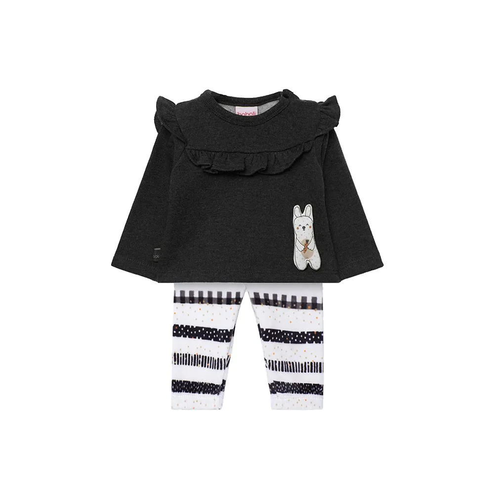 Ensemble en tricot gris foncé pour bébé, conçu pour apporter chaleur et douceur pendant les saisons d´automne et d´hiver.