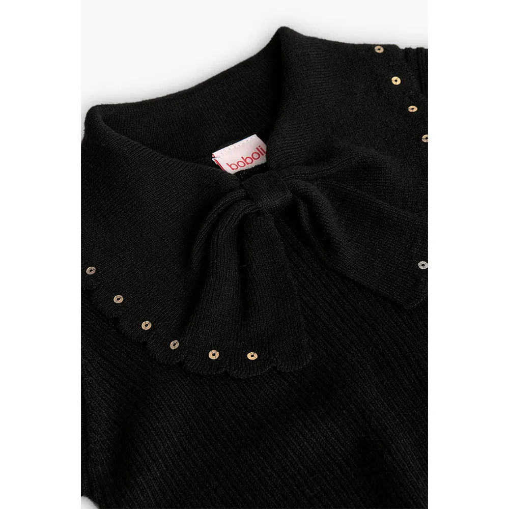 En noir, le pull se distingue par son élégant nœud et ses délicates perles sur l´encolure, qui lui confèrent un style sophistiqué.