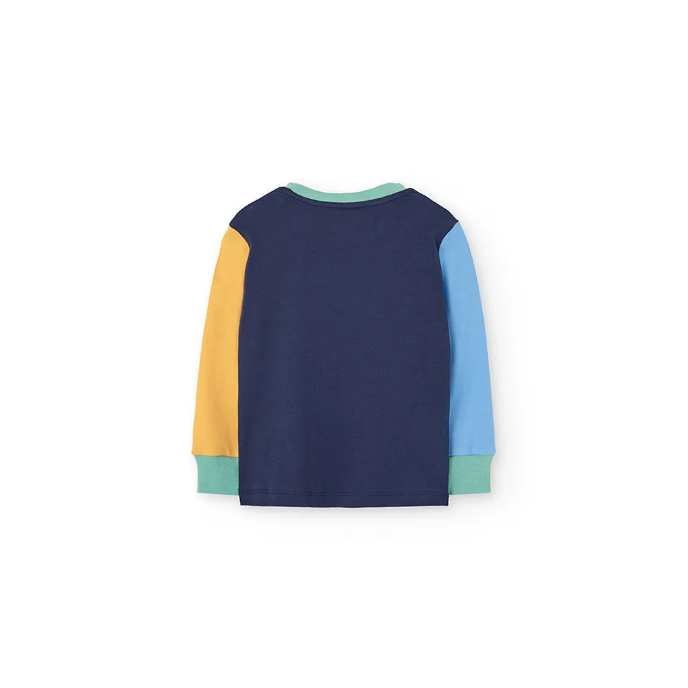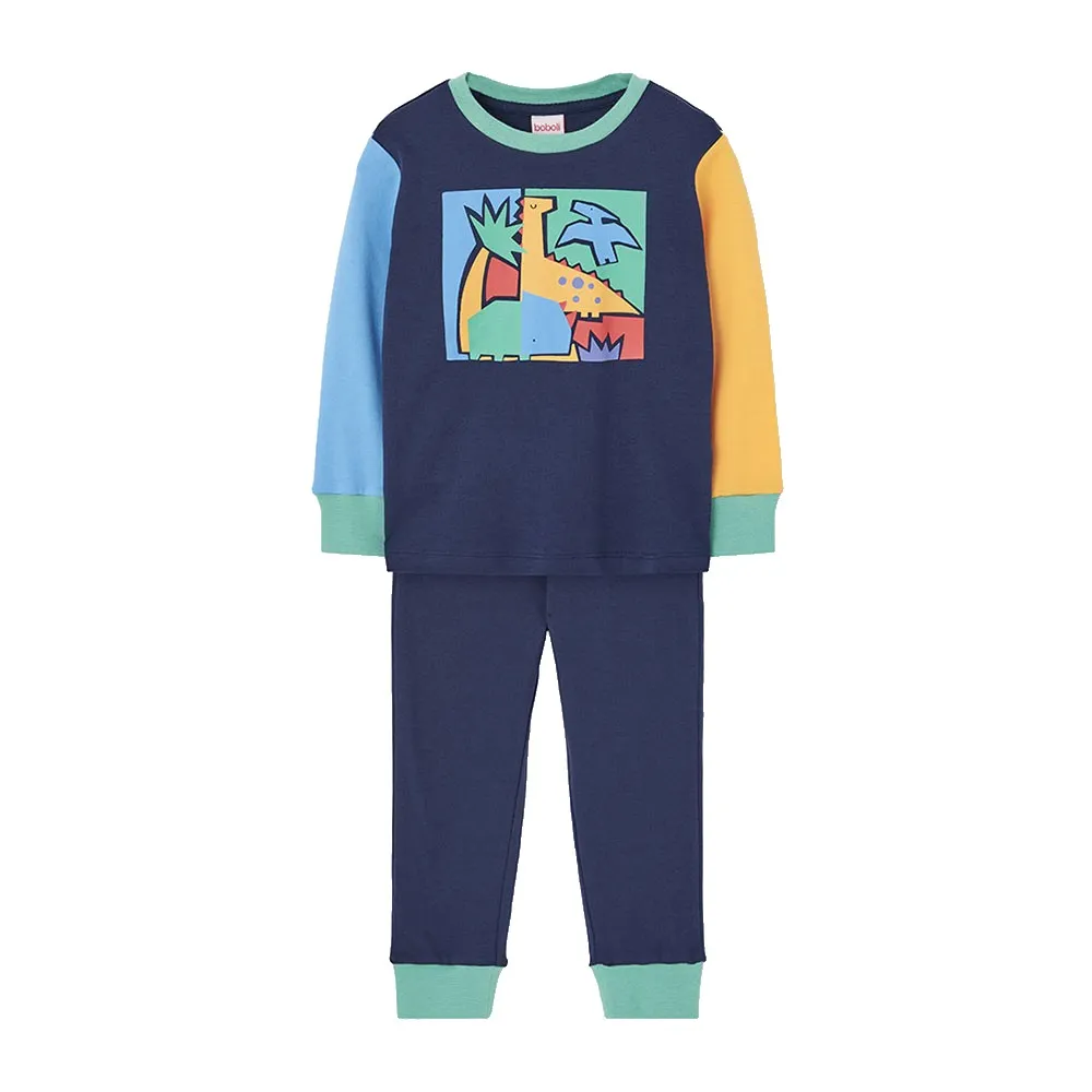 Pyjama interlock pour garçon avec motifs abstraits de dinosaures, conçu pour offrir un confort optimal pendant le repos nocturne.