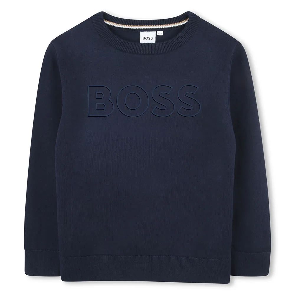 Ce pull affirme un style confiant. La caractéristique principale est le logo "BOSS" audacieux et contrastant imprimé sur le devant, un signe distinctif instantané de qualité et de mode haut de gamme. Le col rond classique et la coupe droite créent une silhouette intemporelle, à la fois élégante et facile à porter. Ce modèle pull-over, conçu sans fermeture éclair, offre un look épuré et ininterrompu et permet aux garçons de s´habiller facilement seuls. Les détails finement côtelés sur le col, les poignets et l´ourlet ajoutent non seulement une touche de texture raffinée, mais assurent également un ajustement confortable et sûr qui conserve sa forme tout au long de la journée.