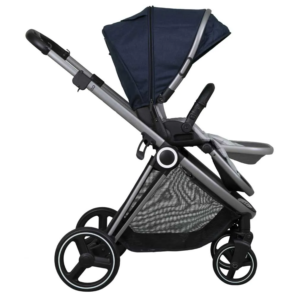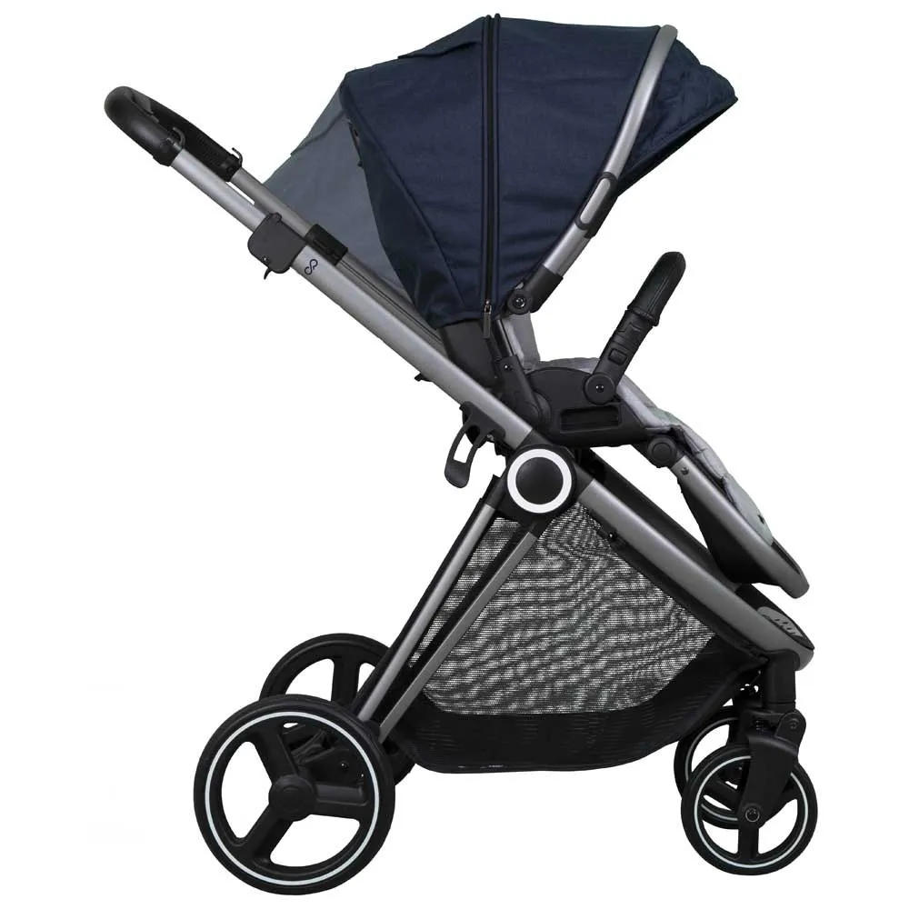 Poussette avec siège réversible et pliée dans les deux sens. Comprend une nacelle avec 5 positions d'inclinaison et une taille de groupe 0+ i. L'option la plus confortable pour votre bébé, siège large et rembourré, dossier rabattable en trois positions et repose-pieds réglable en deux positions. Ses grandes roues résistantes réduisent les rebonds sur les surfaces inégales.