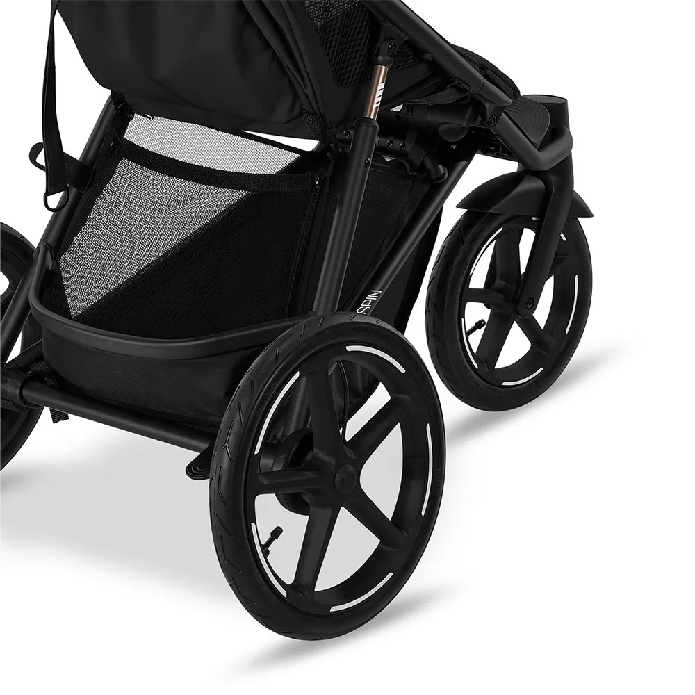 Découvrez un nouveau niveau de maniabilité grâce à la conception innovante de l´Avi Spin. La roue avant pivotante à 360° offre une agilité exceptionnelle pour les virages serrés en ville et les magasins bondés, vous permettant de glisser facilement tout au long de votre journée. Lorsqu´il est temps d´accélérer le rythme, un simple interrupteur verrouille la roue avant en place, transformant l´Avi Spin en une poussette de jogging stable et fiable. Combinée à de grands pneus gonflés à l´air et à une suspension arrière souple, cette poussette absorbe chaque bosse, assurant une promenade confortable et sereine à votre enfant sur tous les terrains, des trottoirs lisses aux sentiers de parc accidentés. Le frein à main intégré offre un contrôle et une confiance supplémentaires, en particulier lorsque vous naviguez sur des collines ou que vous faites du jogging.