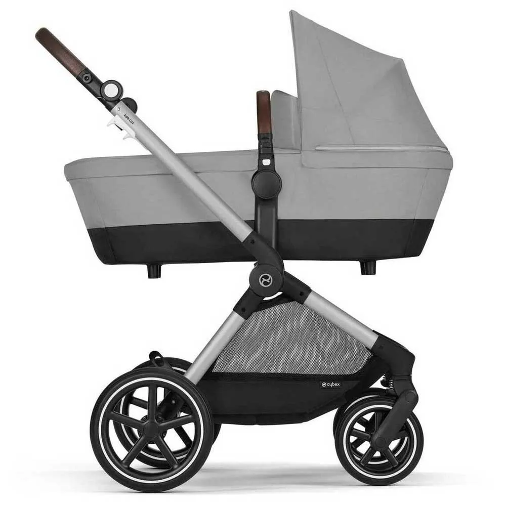 En plus de la nacelle et du siège, vous pouvez fixer un siège auto pour bébé CYBEX primé sur le châssis de la poussette.