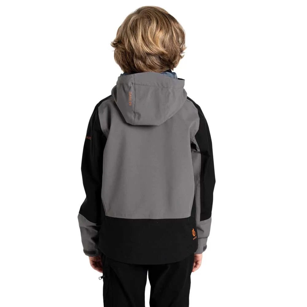 La veste Dare 2b Kid´s Explore II. Fabriquée à partir de notre tissu ARED 30/30 recyclé, leader sur le marché, notre tissu le plus imperméable et respirant jamais créé. La colonne d´eau de 30 000 mm gardera vos petits au sec même par temps très difficile et notre indice de respirabilité de 30 000 offre un confort et une protection inégalés. Une finition déperlante durable et des coutures entièrement thermocollées protègent des averses soudaines. Dotée d´une capuche technique et de poches basses zippées.
