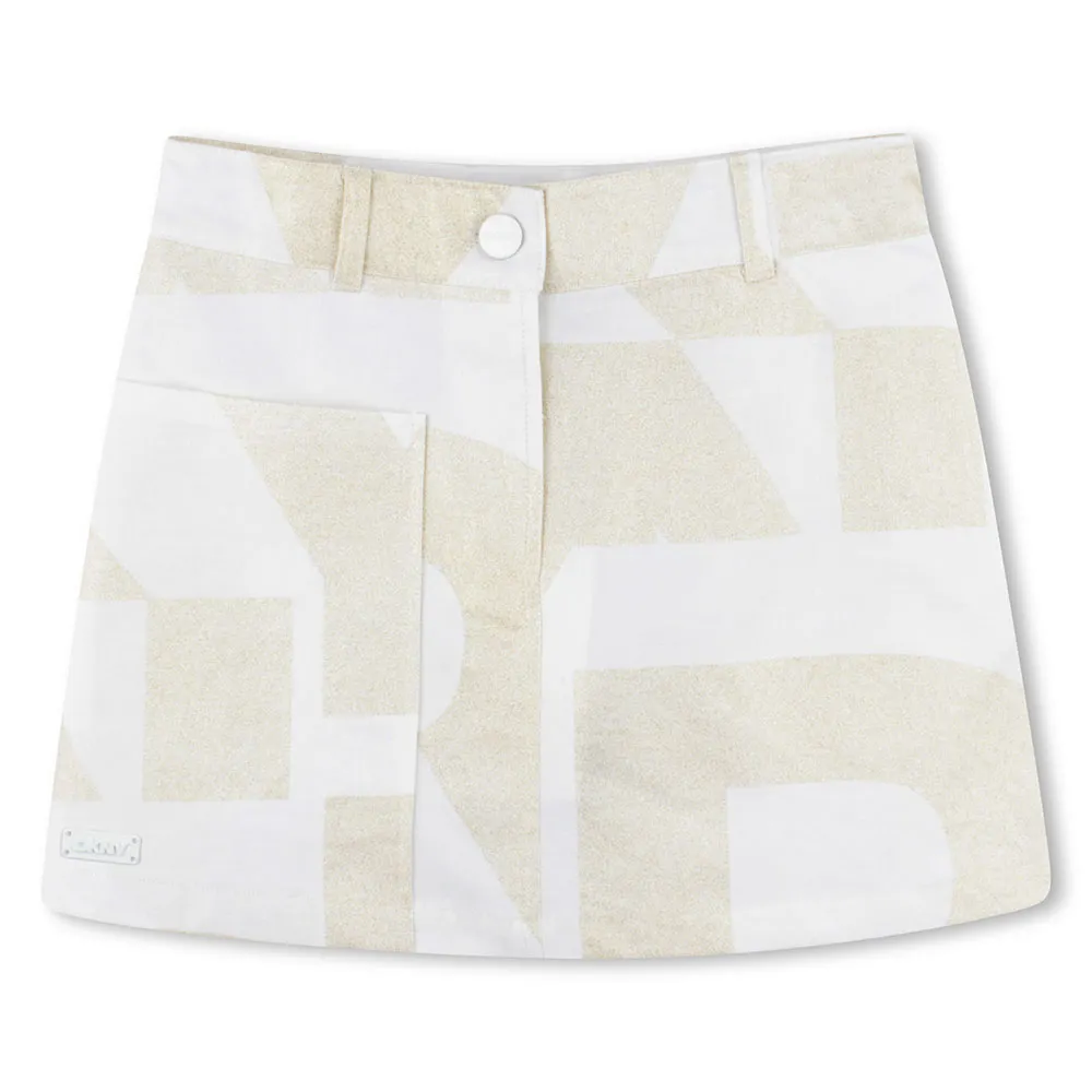 Jupe courte en coton et lin, coupe droite, avec imprimé doré intégral inspiré de la collection adulte (85%CO 15%LI).