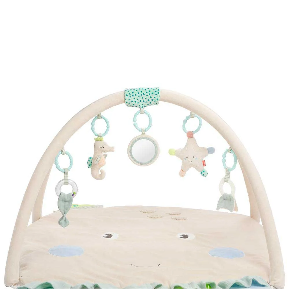 Le centre de jeu avec jouets amovibles améliore le développement de la petite enfance tout en étant allongé, assis et rampant, pour les bébés et les tout-petits 0+ il y a beaucoup à découvrir sur la pieuvre d'activité 3-D de la collection Children Of The Sea. Le grand tapis de jeu en forme de pieuvre stimule l'imagination avec des fonctionnalités de jeu cachées et invite le bébé à se sentir, à se câliner et à jouer. Les petites créatures marines sur les arches favorisent la saisie consciente et la première coordination œil-main. Avec l'anneau hochet, le son animal, le miroir, le hochet, l'anneau de dentition et un mélange de matériaux, les pendentifs favorisent de manière ludique le sens du toucher, l'ouïe et la motricité de bébé. Le bébé peut renforcer de manière ludique les muscles du dos et du cou dans différentes phases de croissance tout en jouant, en se couchant, en rampant et en s'asseyant sur la couverture d'activité 3-D Octopus.