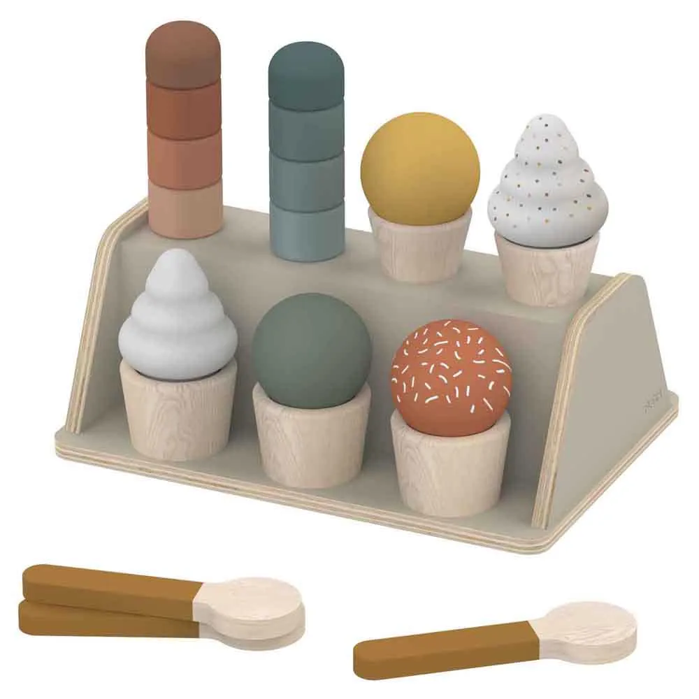 Avec ce service à crème glacée en bois naturel, votre enfant pourra servir des glaces pendant les chaudes journées d´été et se démarquer devant le magasin de jouets en jouant le rôle d´un généreux marchand de glaces.