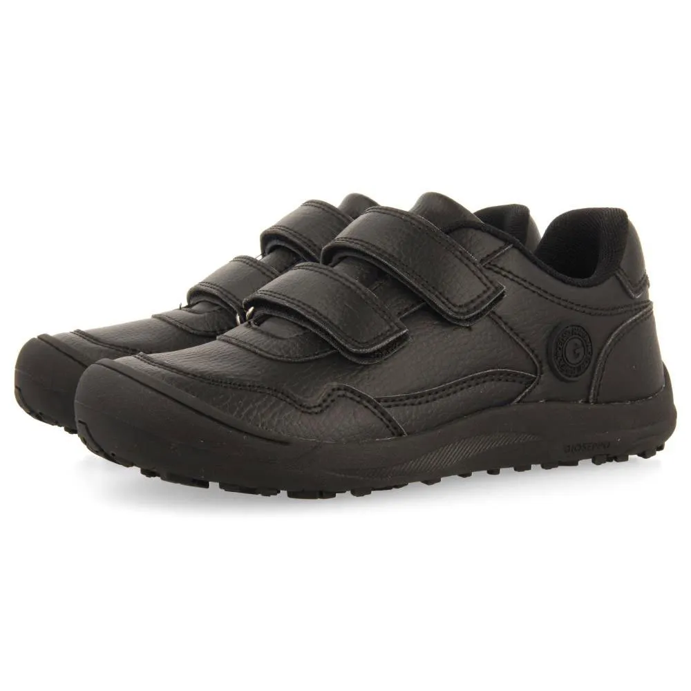 Baskets scolaires noires avec fermetures réglables.
