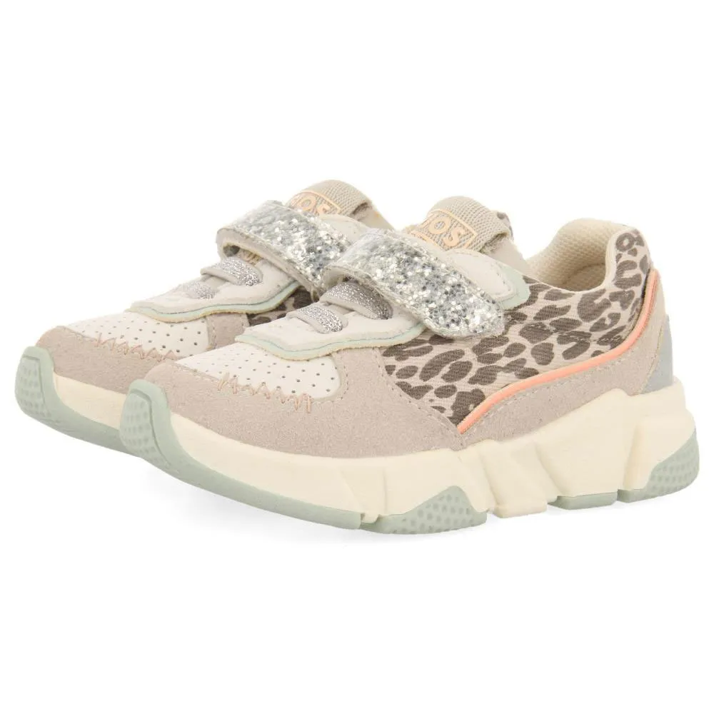 Toutes les tendances sont chez Gioseppo Kids ! Baskets blanches à imprimé léopard et couleurs pastel.