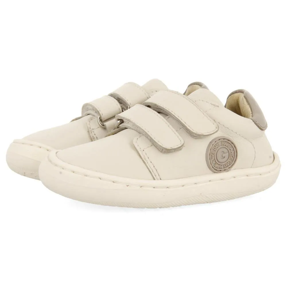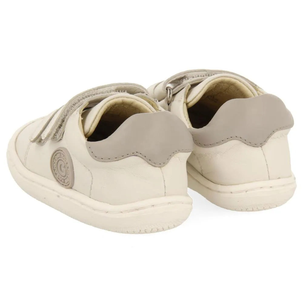 Baskets blanches avec fermetures réglables sans éléments anatomiques qui pourraient gêner le développement optimal du pied.