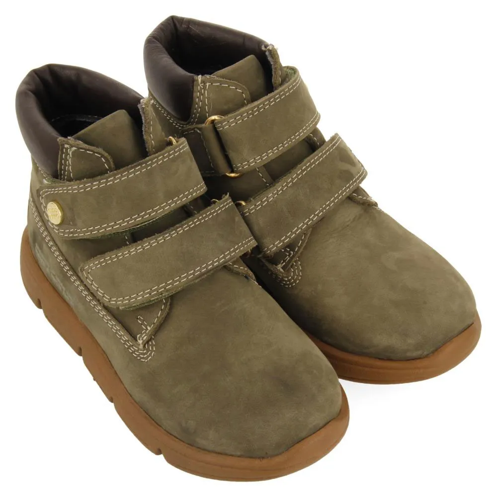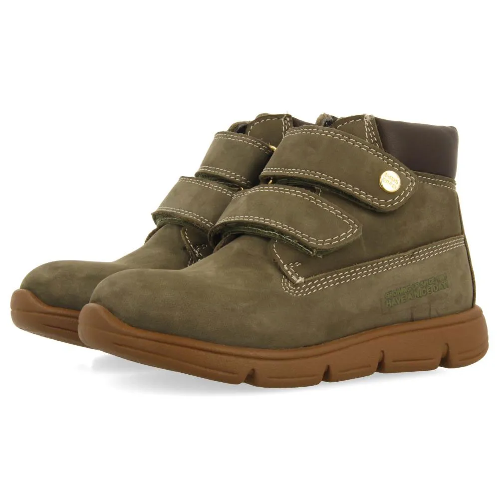 Parfait pour la journée ! Bottines en cuir kaki avec fermetures réglables.