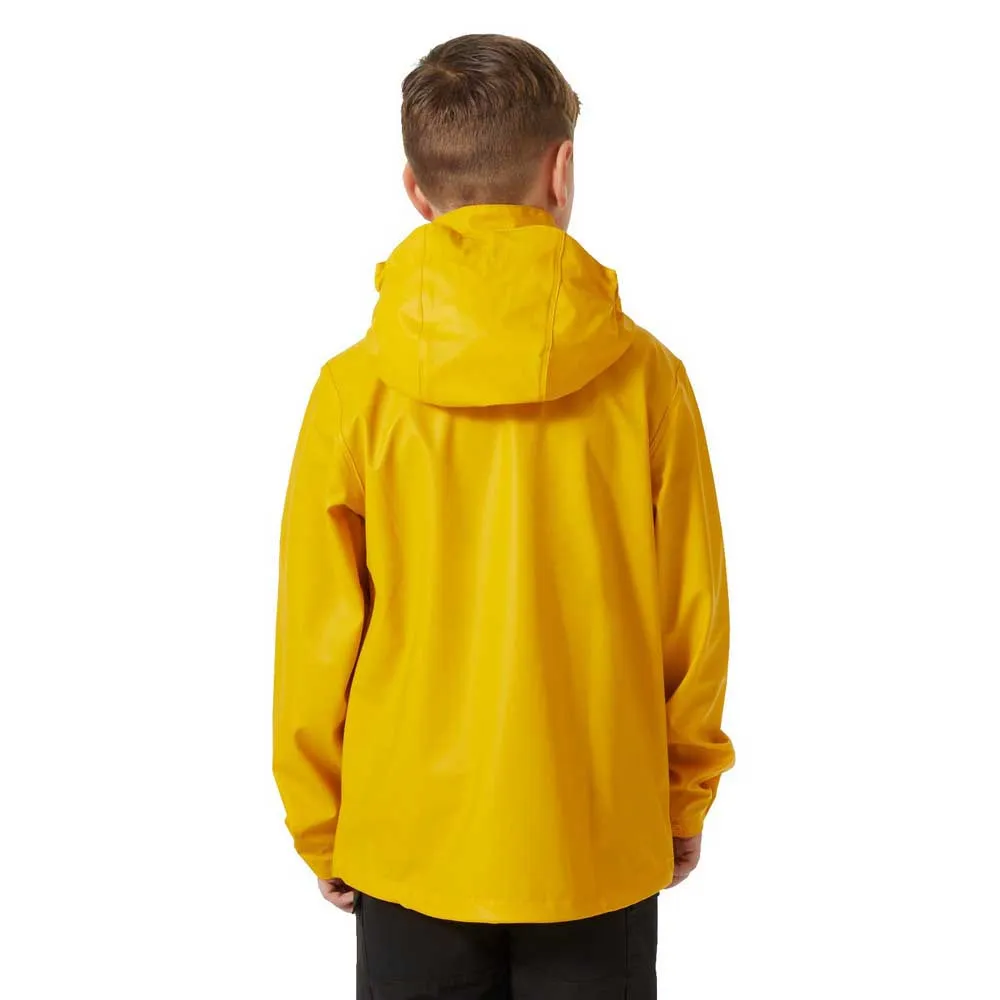 Notre veste de pluie Moss Junior est imperméable et coupe-vent grâce à la technologie Helox+.