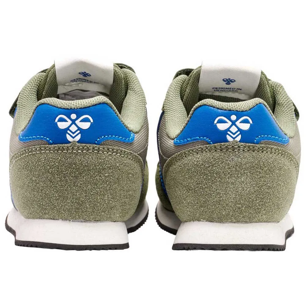 Ces baskets hummel® sont dotées d'une fermeture à deux bandes Velcro, ce qui les rend faciles à enfiler pour les tout-petits.