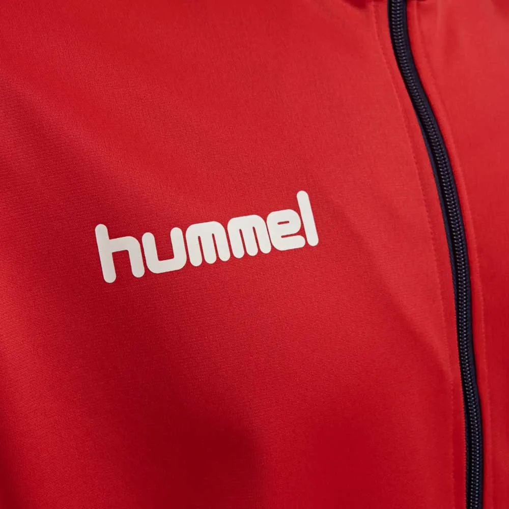 La veste zippée de cet ensemble de survêtement hummel® a un col montant et deux poches latérales.