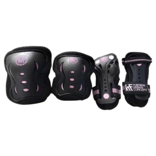 Ensemble de genouillères + coudières + bracelet en rose pour la protection contre les chocs pendant la pratique sportive des garçons et des filles.