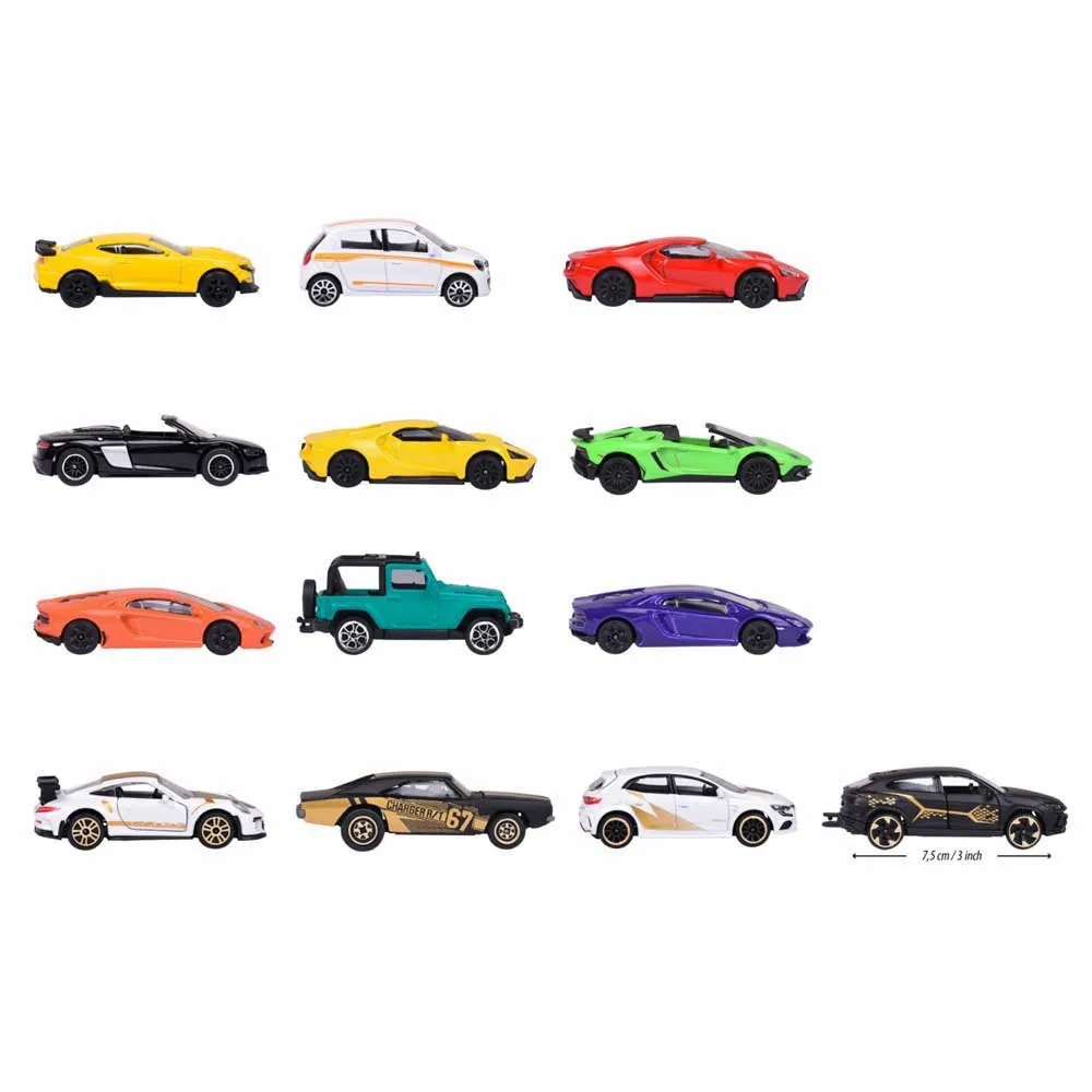 - Contenu de l'emballage - 13 voitures différentes, y compris la Porsche 911 Gt3 Rs et la Renault Megane RS dans un design doré, uniquement disponibles dans cet ensemble.