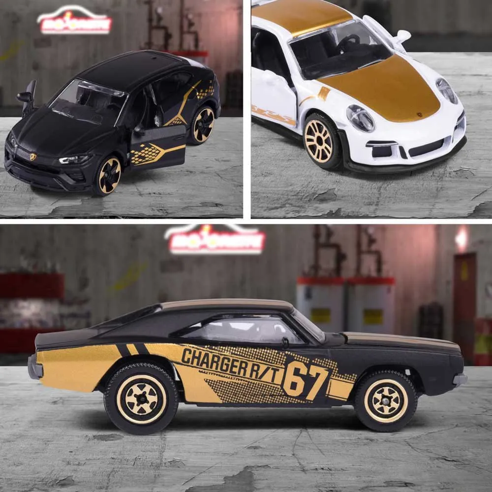 En plus de 9 véhicules classiques avec des licences officielles de Ford, Lamborghini, Audi, Renault et d'autres fabricants, l'ensemble contient également 4 véhicules au design doré élégant - la Dodge Charger R/T et la Lamborghini Urus, ainsi que des modèles exclusifs de la Porsche 911 Gt3 Rs Et La Renault Mégane RS