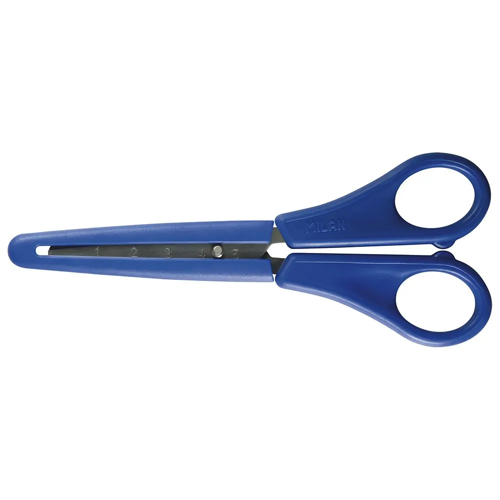 Lames en acier inoxydable, pointes arrondies, et règle de 5 cm.