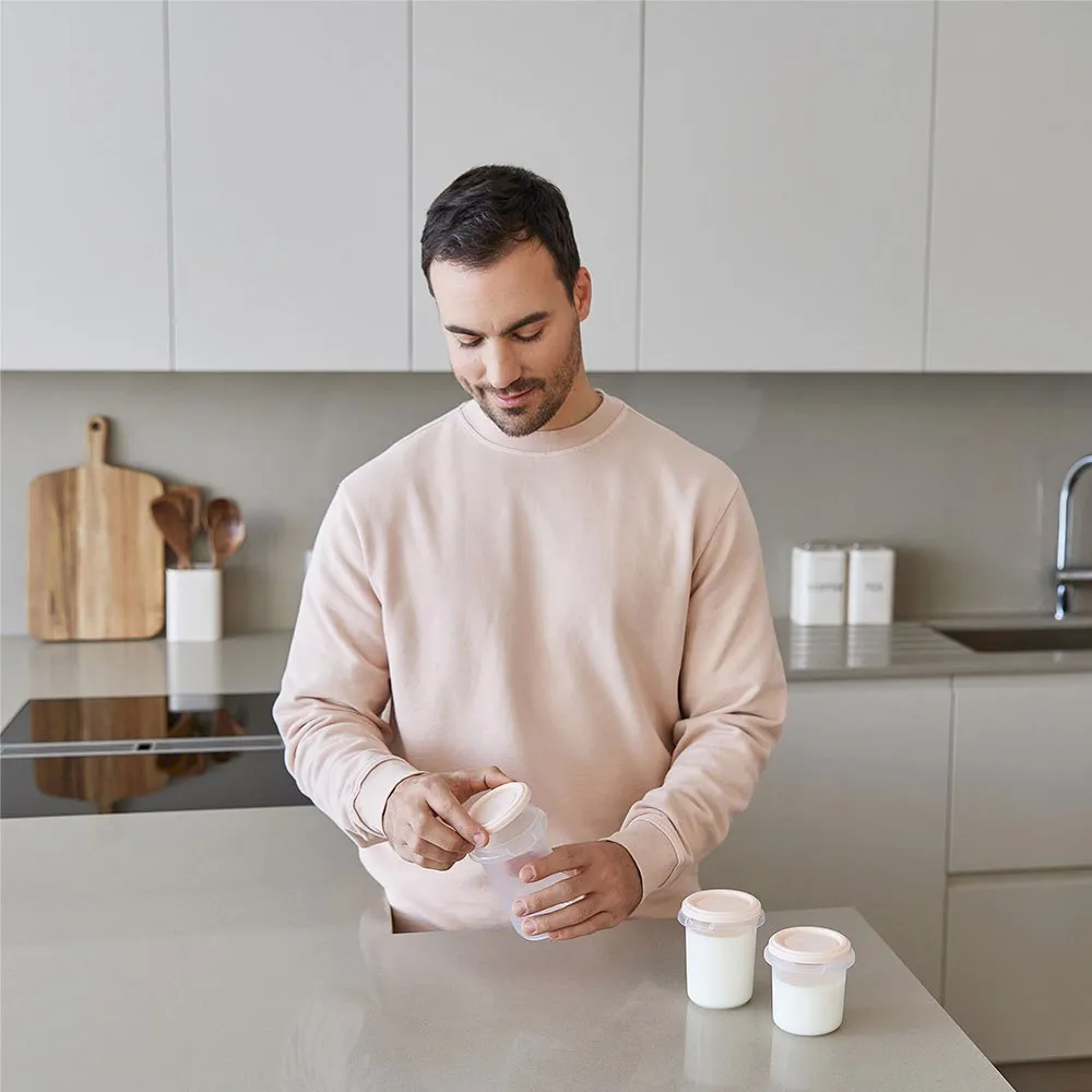 Le récipient est gradué pour pouvoir mesurer avec précision les quantités (ce qui est très utile pour le lait maternel) et dispose également d´un espace où vous pouvez écrire pour indiquer des données importantes telles que les dates, les noms, etc.
