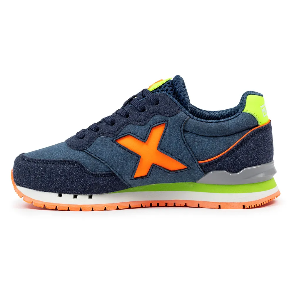 La MUNICH Dash 167 regorge de caractéristiques qui soulignent sa qualité et son design réfléchi. Le profil bas offre une excellente liberté de mouvement autour de la cheville, idéal pour courir et jouer. La tige présente un mélange dynamique de textures et de superpositions, créant un look visuellement intéressant et structuré. Le logo emblématique "X" de MUNICH est affiché en évidence sur le côté, signifiant une marque de qualité et un design européen authentique La semelle intermédiaire bicolore ne fait pas qu´ajouter à l´attrait visuel, elle contribue également à la légèreté et au confort amorti de la chaussure.