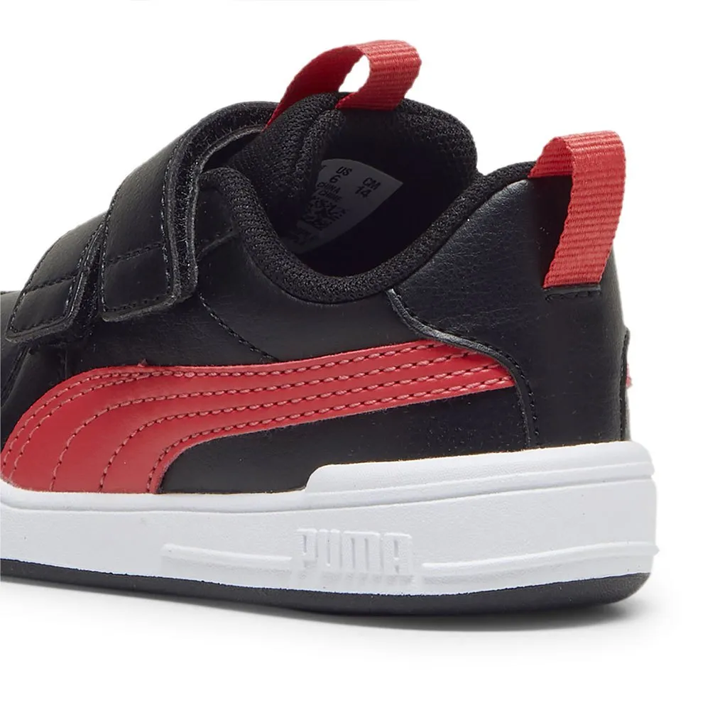 Avec notre nouvelle silhouette Puma Multiflex, les enfants sont prêts à jouer en toute sécurité et confortablement tous les jours. La semelle extérieure en caoutchouc pleine offre une adhérence et les matériaux durables sur la tige assurent une longévité. La coupe de ce style a été mise à jour pour faciliter l´enfilage et le retrait. Cette version présente une tige en cuir synthétique.