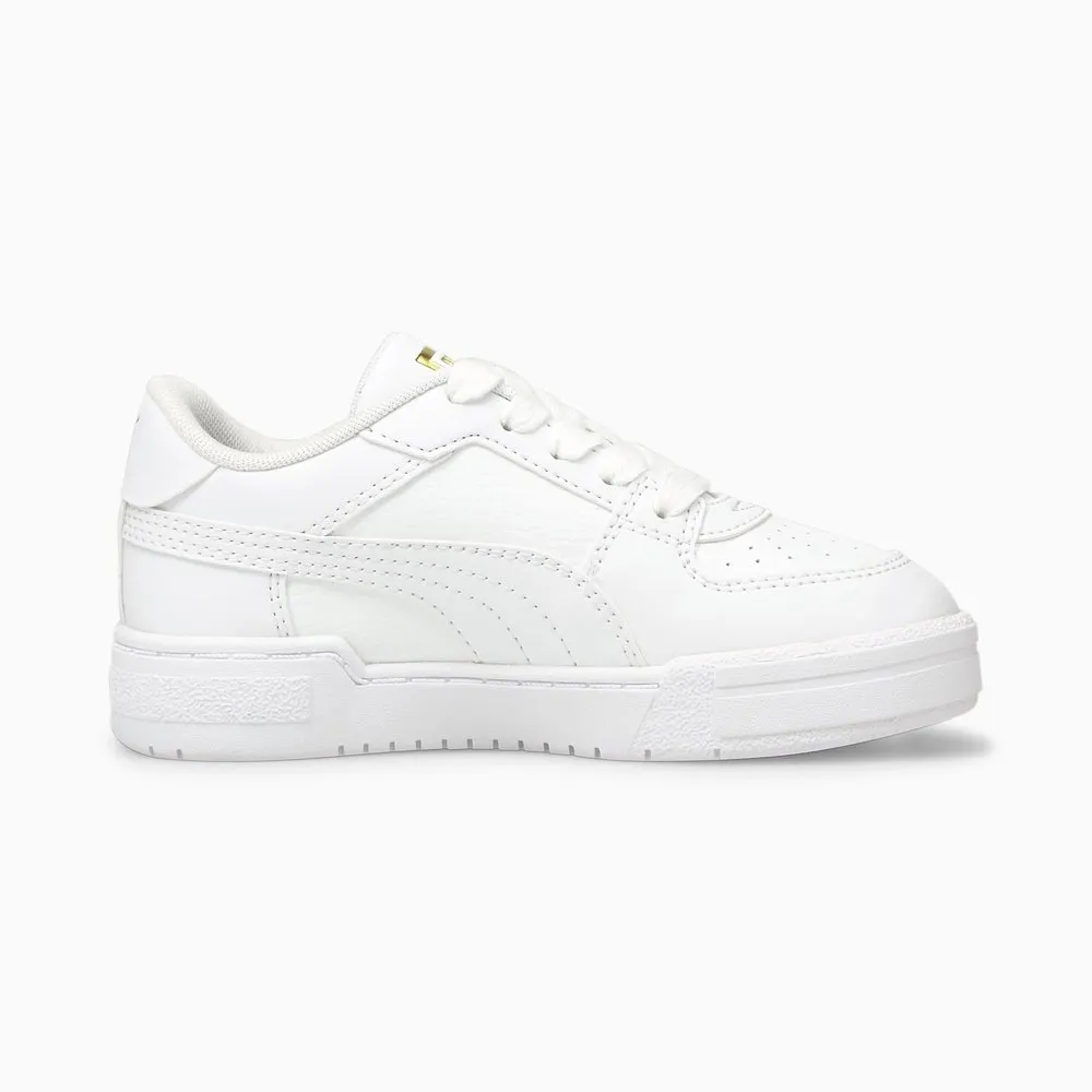 HISTOIRE DU PRODUIT Voici les dernières venues de la célèbre collection PUMA California. Depuis plus de 40 ans, ce modèle marque le style urbain, et cette dernière édition compte bien préserver cette tradition. Elle est dotée d´une tige synthétique, d´une doublure en mesh et d´une semelle intérieure ultraconfortable (présentant une sérigraphie du logo PUMA). De plus, afin de vraiment se démarquer, elle présente un marquage PUMA imprimé en creux sur film sur le quartier et le talon. DÉTAILS Coupe basseTige en cuir synthétiqueSemelle intérieure avec sérigraphie du logo PUMASemelle intermédiaire avec capsules en caoutchouc et en TPUSemelle extérieure en caoutchouc qui ne marque pasDoublure en meshMarquage PUMA imprimé en creux sur film sur le quartier et le talonBande PUMA sur les côtés intérieur et extérieurLogo PUMA N° 2 sur la tige et lettrage PUMA sur la languetteModèle PUMA pour jeune enfant : recommandé pour les jeunes enfants (de 4 à 8 ans)