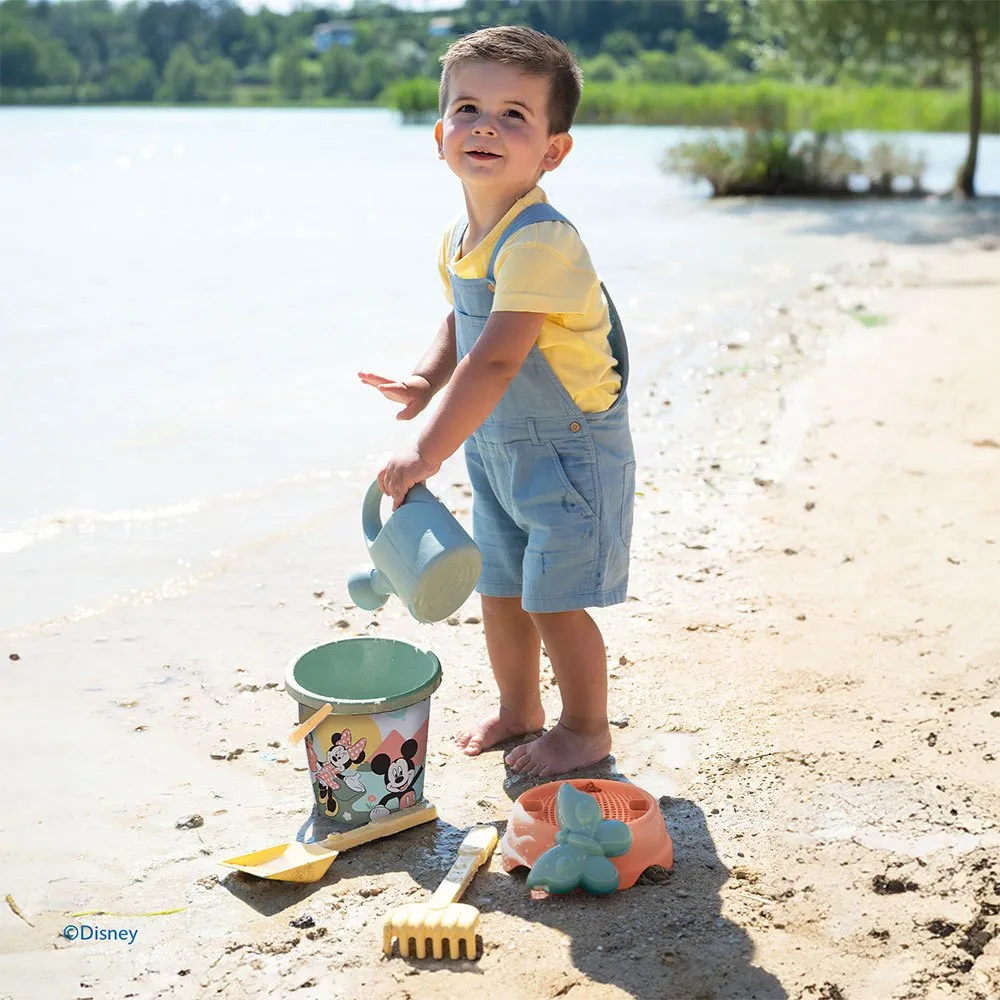 Seau de plage Smoby Life Mickey Minnie, 17cm, Fabriqué avec des matériaux recyclés, Avec arrosoir, tamis, râteau, pelle et moule à sable, À partir de 18 mois, Fabriqué en France.