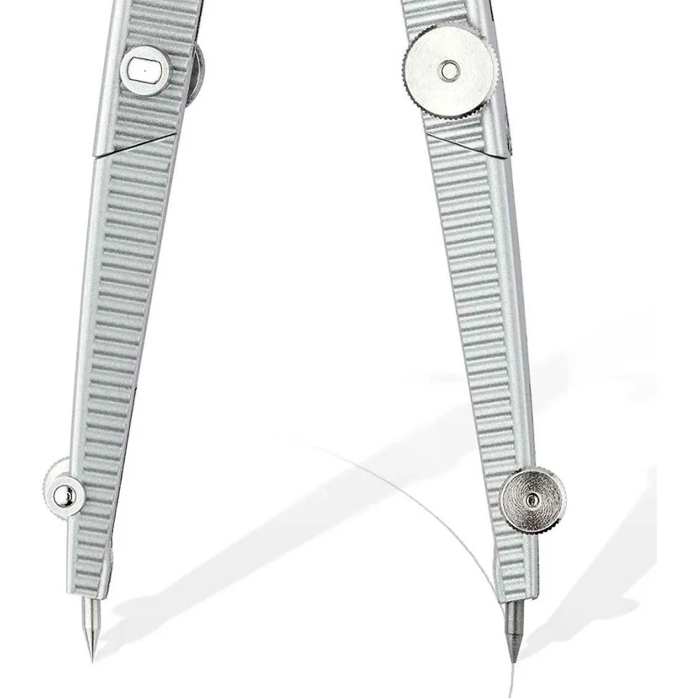 Set de dessin composé d'un compas scolaire à moustache, d'un adaptateur et d'un tube à mines.