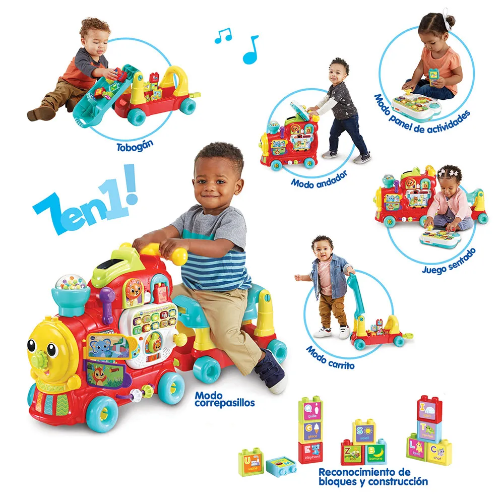 Êtes-vous prêt à rouler? Apprenons en t'amusant avec le Maxi tren ABC de paseo de VTech ! Ce train alphabétique 4 en 1 grandit avec moi comprend des modes pour le jeu assis, la marchette, le chariot à tirer et la promenade.