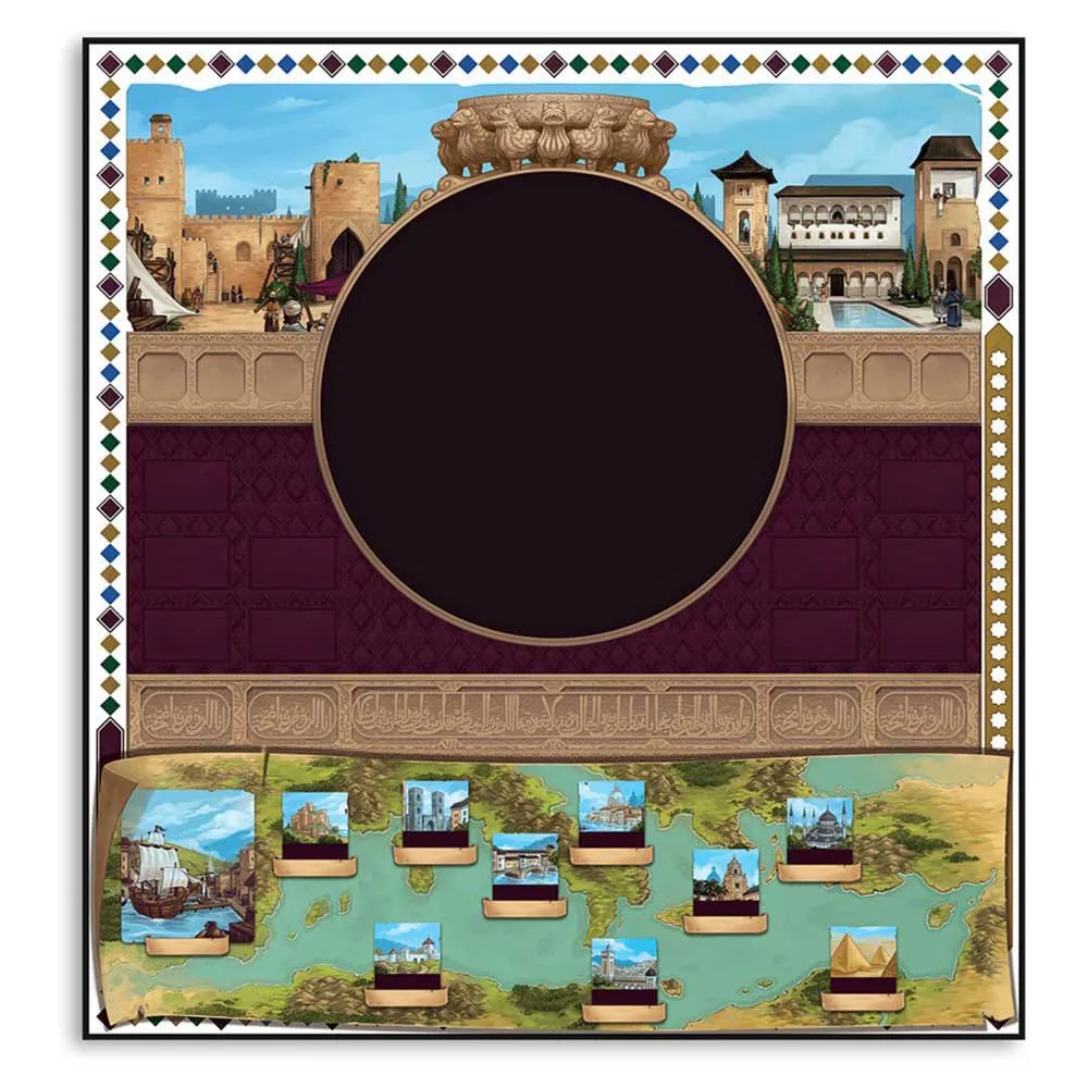 Costruzione dell'Alhambra, l'incisione di poesie nelle sue stanze e l'esportazione di merci lungo le rotte commerciali. Tutto questo si svolgerà in 5 epoche (round), e alla fine del quinto e ultimo round, vincerà il giocatore che avrà accumulato più punti prestigio.