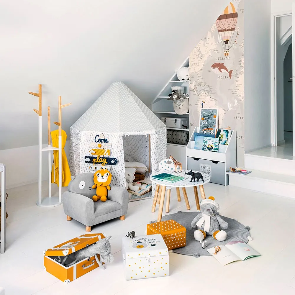 Imbottita di gommapiuma, questa morbida poltrona accoglie i più piccoli per un momento di pace e tranquillità.