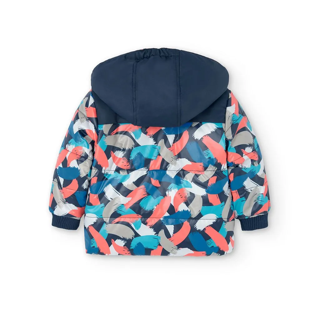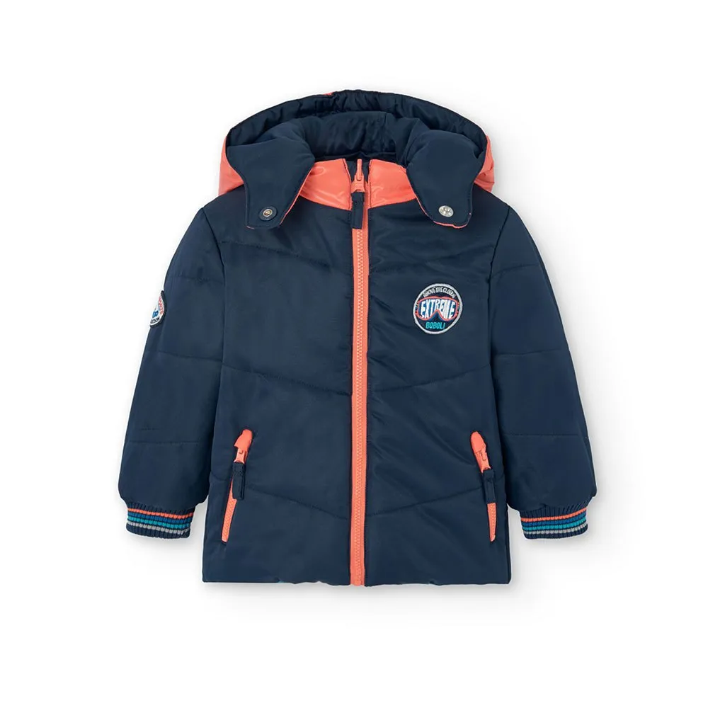 Il parka ha un colletto con cappuccio staccabile, perfetto per proteggere il tuo piccolo dal freddo.